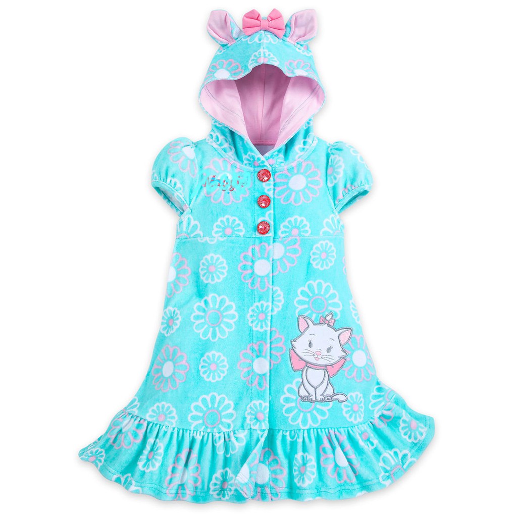 The Aristocats' cutest kitten will help your little look purr-fectly adorable at the beach or pool with this cover-up. This post-swim dress features an appliqué of Marie and a hood with ears and her signature bow.