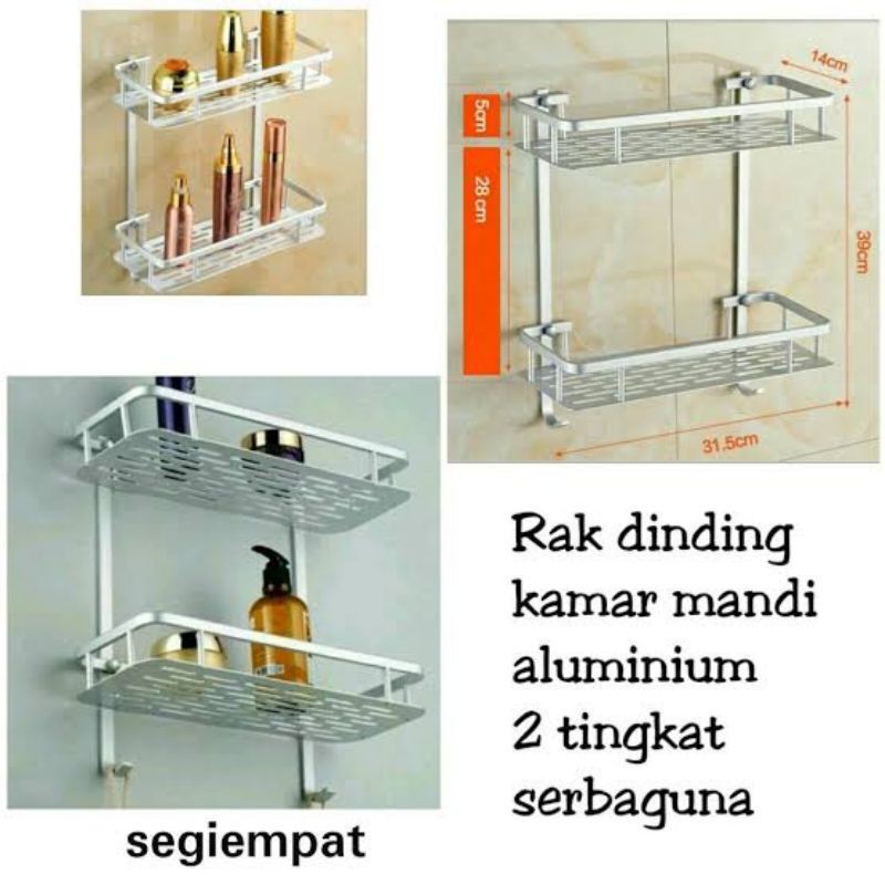 Name: Rak Kamar Mandi 2 Susun Tingkat Aluminium Wc Dinding Toilet Dapur Serbaguna Tingkat Segi4 Kotak