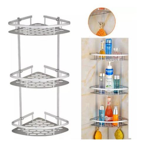 Rak Sudut Alumunium 3 susun untuk Dinding Toilet multifungsi terbuat dari aluminium dengan kualitas high-end.