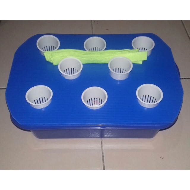 - 1 buah Bak Plastik untuk tandon Nutrisi ukuran sekitar PxLxT +/- 35 x 21 x 12 cm.